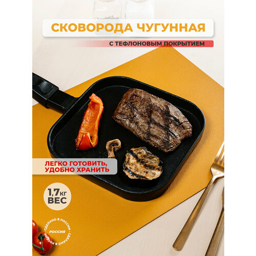 Сковорода чугунная с тефлоновым покрытием 21х21см со съемной ручкой