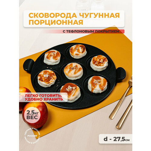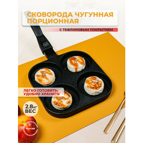 Сковорода чугунная с тефлоновым покрытием 4х порционная