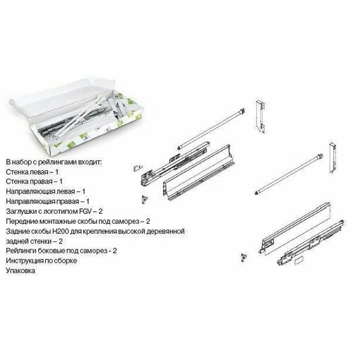 Ящик TEN полного выдвижения (набор) с рейлингами, высота / глубина: 200/450, инд. уп.