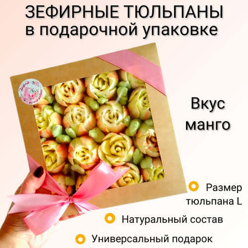 Зефирные тюльпаны со вкусом манго в подарочной упаковке