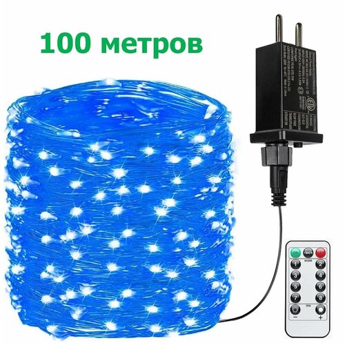 Электрогирлянда Роса светодиодная нить уличная 100 м. Синий