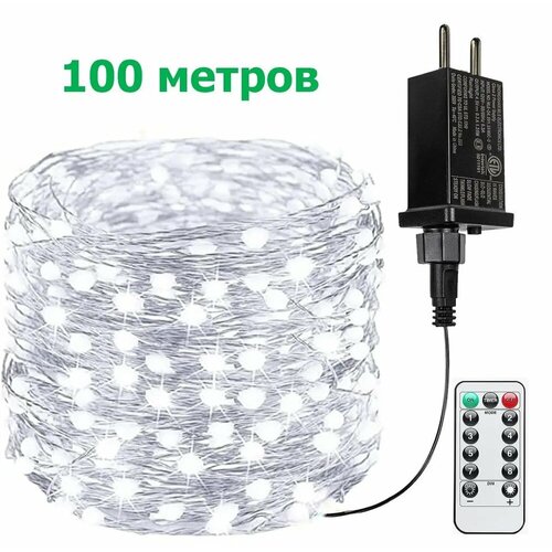 Электрогирлянда Роса светодиодная нить уличная 100 м. Холодный
