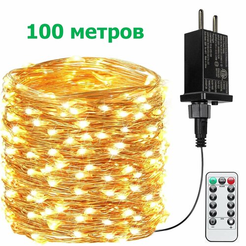 Электрогирлянда Роса светодиодная нить уличная 100 м. Тёплый белый