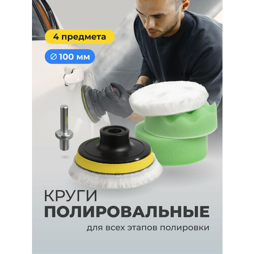 Круги полировальные, Flex Drive, Насадки на липучке для полировки фар, Набор 100 мм, 4 шт.
