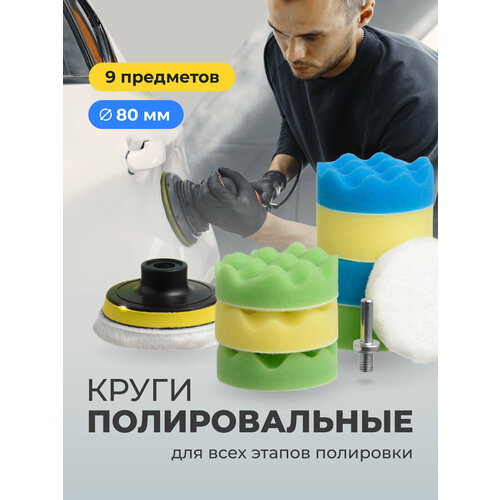 Круги полировальные, Flex Drive, Насадки для полировки авто на липучке, Диск полировочный для машины / фар сменный, Набор 80 мм, 9 шт.