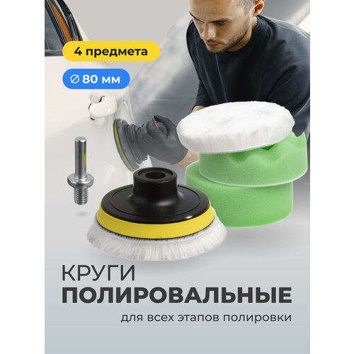 Полировальные круги для автомобиля Flex Drive на липучке, 80 мм, 4 шт. Насадки для полировки авто на липучке