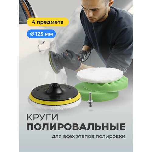 Полировальные круги для автомобиля Flex Drive на липучке, 125 мм, 4 шт. Насадки для полировки авто на липучке