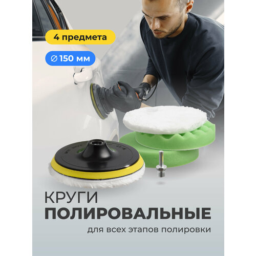 Круги полировальные, Flex Drive, Насадки для полировки авто на липучке, Диск полировочный для машины / фар сменный, Набор 150 мм, 4 шт.