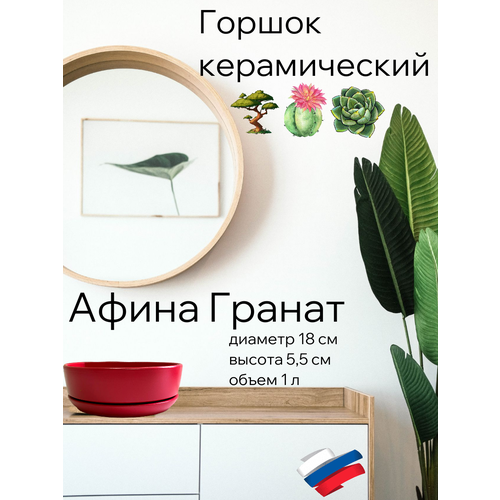 Керамический горшок "Афина Гранат" для бонсай, кактусов и суккулентов, диаметр 18 см, высота 5,5 см