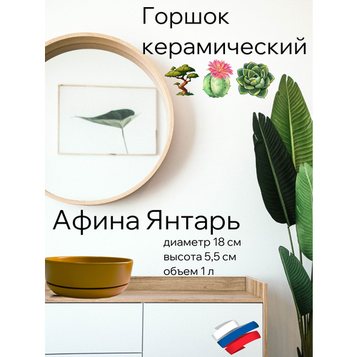 Керамический горшок "Бонсай - Афина" для бонсай, кактусов и суккулентов, диаметр 18 см, высота 5,5 см