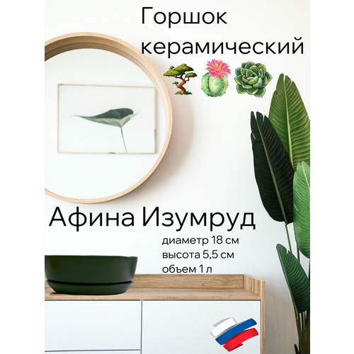 Керамический горшок "Афина Изумруд" для бонсай, кактусов и суккулентов, диаметр 18 см, высота 5,5 см
