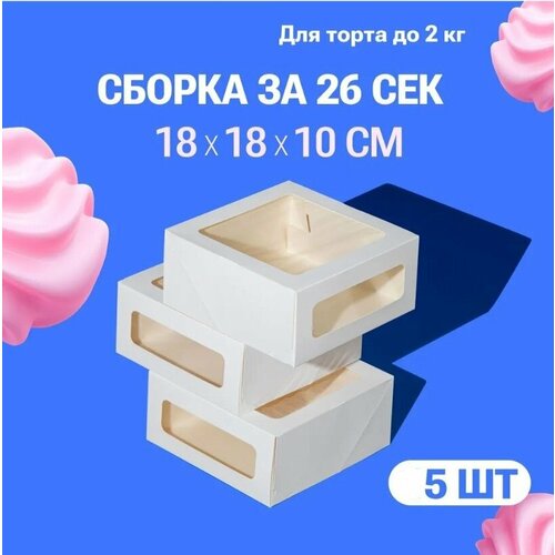 Коробка с окном для торта ForGenika, белая картонная упаковка для десерта 22*22*10 см, 5 шт.