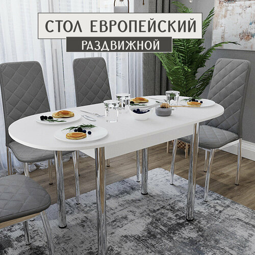 Стол кухонный раздвижной FORTmeb Европейский, Белый, ноги хром