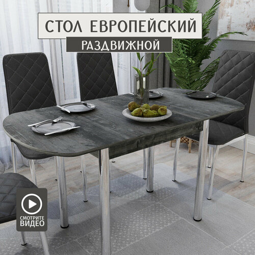 Стол кухонный раздвижной FORTmeb Европейский 68х109х75 см, Штейн темный, Хром