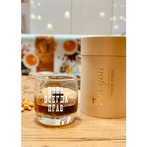 Бокал для виски в подарочной упаковке (тубусе) с гравировкой "Папа всегда прав"