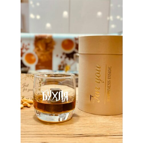 Бокал для виски в подарочной упаковке (тубусе) с гравировкой "Бухля"
