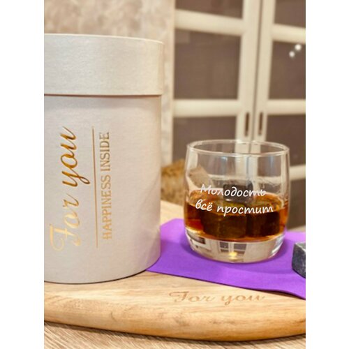 Бокал для виски в подарочной упаковке (тубусе) с гравировкой "Молодость все простит"