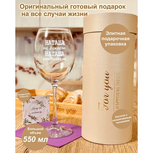 Бокал для вина в подарочной упаковке (тубусе) с гравировкой "Наташа не бухает Наташа отдыхает