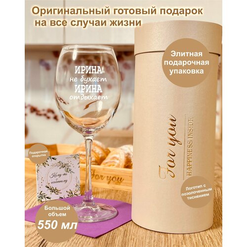 Бокал для вина в подарочной упаковке (тубусе) с гравировкой "Ирина не бухает Ирина отдыхает