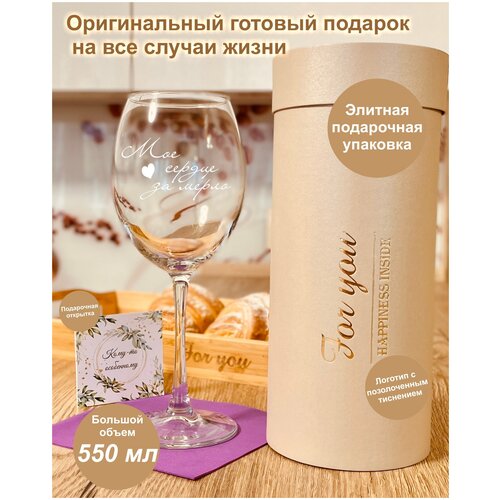 Бокал для вина в подарочной упаковке (тубусе) с гравировкой "Мое сердце за мерло"