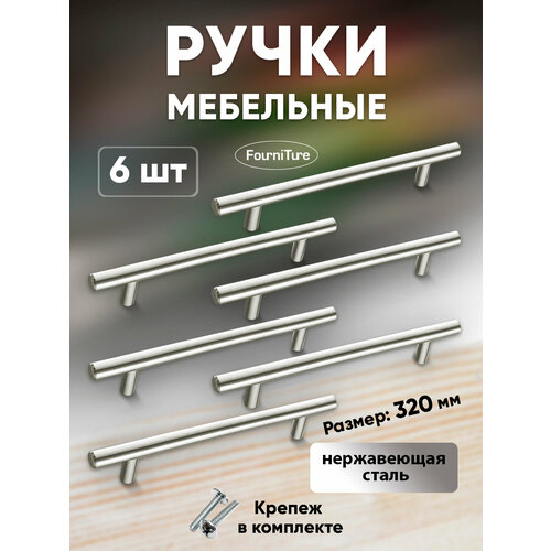 Ручки для мебели рейлинг 320 мм, нержавеющая сталь ,6 шт