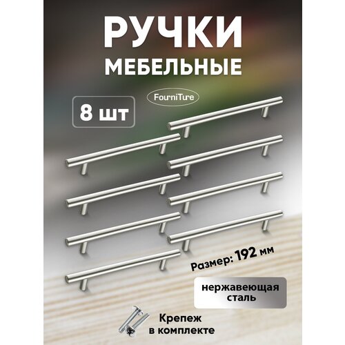 Ручки для мебели рейлинг 192 мм, нержавеющая сталь, 8 шт