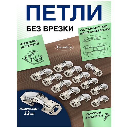 Петли мебельные без врезки (быстрого монтажа) FourniTure - 12 шт