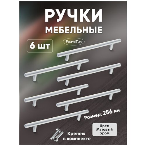Ручки мебельные рейлинг 256 мм матовый хром 6 шт