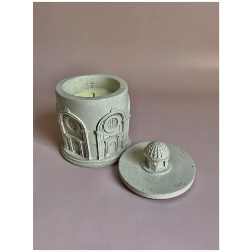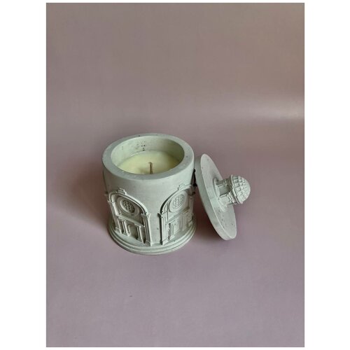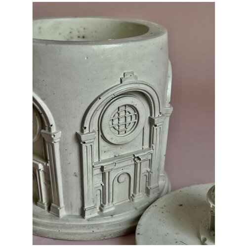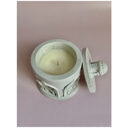 Свеча в гипсовом кашпо с запахом древесно-пряный из соевого воска
