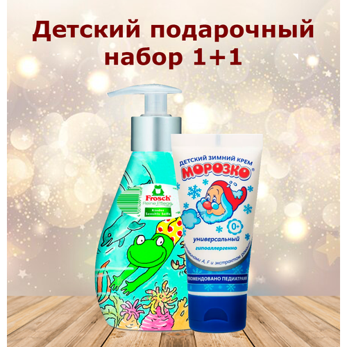 Подарочный набор Frosch Жидкое ухаживающее детское мыло для рук 300 мл + Морозко Детский зимний универсальный крем 50 мл