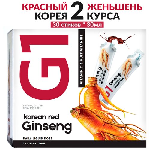 Экстракт корня красного женьшеня G1 Korean Red Ginseng стики 30 шт. Комплексная пищевая добавка в стиках для улучшения самочувствия с экстрактом корейского красного женьшеня