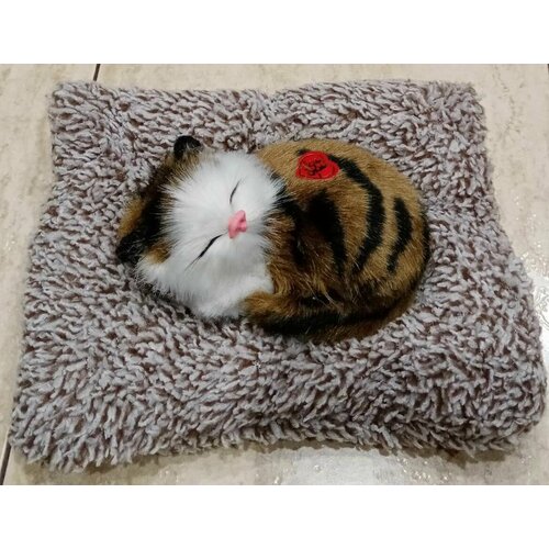 Мягкая игрушка *Спящий котенок на коврике, мяукающий */антистресс (16 см. х13см.)