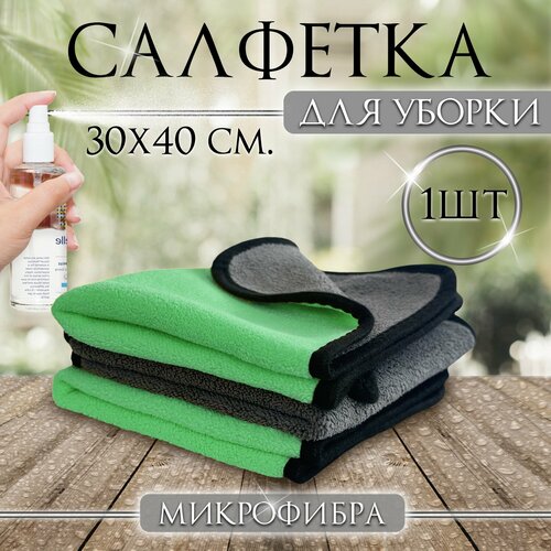 Салфетка для уборки дома из микрофибры зеленая 1 шт.