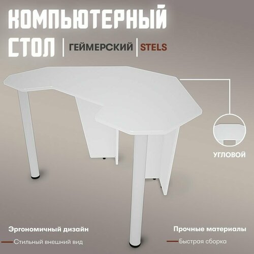 Стол угловой компьютерный игровой геймерский Genesis Stels 120х80х73 для пк и ноутбука белый/черный