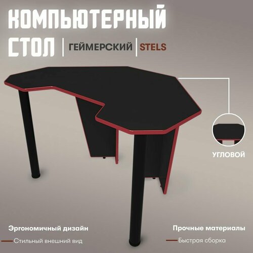 Стол угловой компьютерный игровой геймерский Genesis Stels 120х80х73 для пк и ноутбука черный/красный