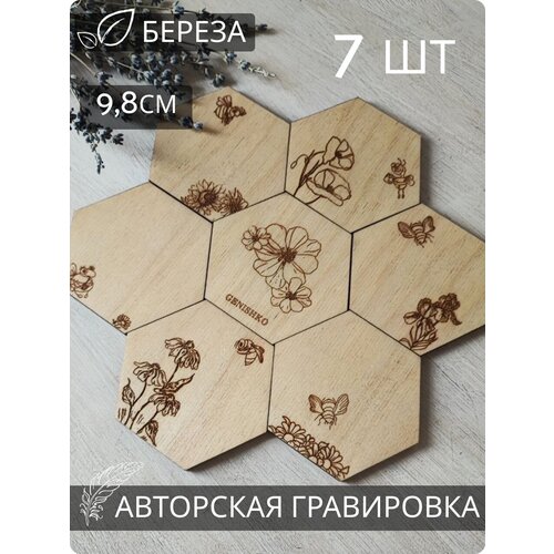 Подставки соты под кружки с пчелами и цветами, бирдекель GENISHKO