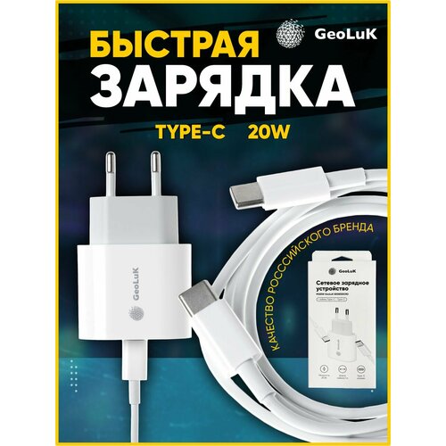 Сетевое зарядное устройство PD20W GeoLuK с кабелем Type-C - Type-C