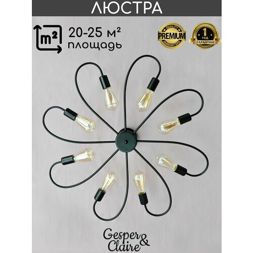 Люстра потолочная подвесная черная паук в спальню кухню зал гостиную детскую лофт на 6 ламп без плафонов Gesper&Claire