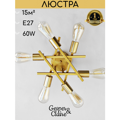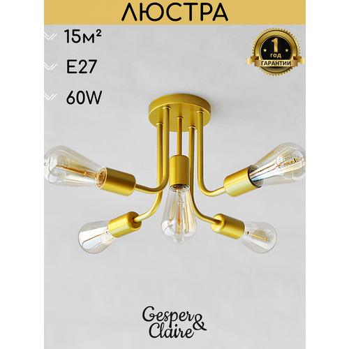 Люстра потолочная на кухню спальню коридор прихожую золото Gesper&Claire