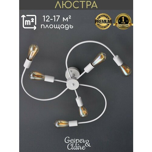 Люстра потолочная белая в спальню кухню зал гостиную детскую лофт без рожков Gesper&Claire
