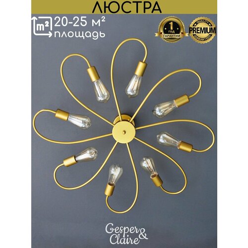 Люстра потолочная подвесная золотая в спальню кухню зал гостиную детскую лофт на 8 лампочек без плафонов