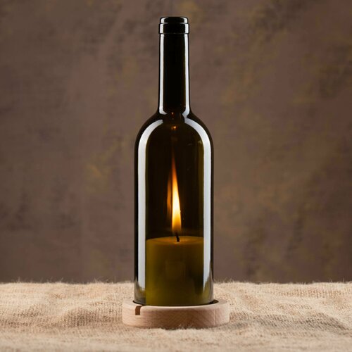 Подсвечник из винной бутылки Gexsia Craft. Винная бутылка с подставкой под свечки. Цвет Сосна