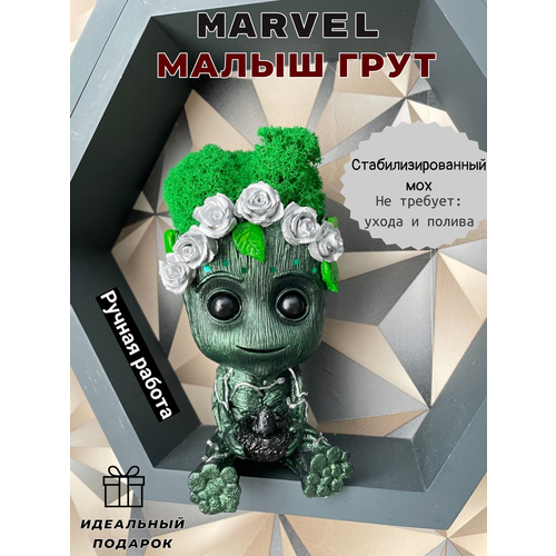 Грут marvel кашпо со стабилизированным мхом