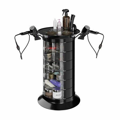 Парикмахерская тележка с 18 ящиками GiroCo Doble Plus 49х49х83 см черная, круглая, пластиковая, выкатная на колесиках для салона красоты, парикмахера