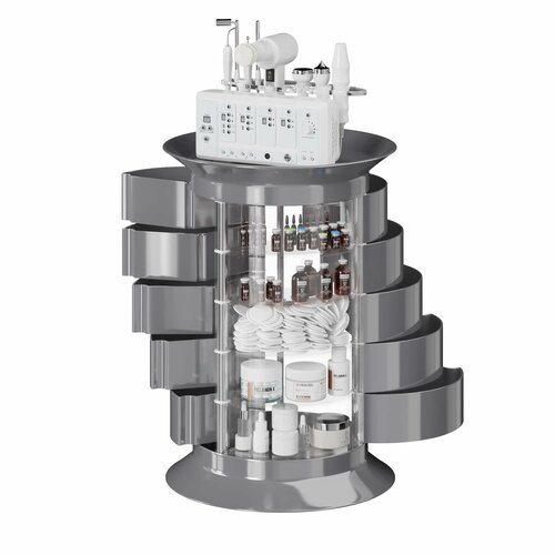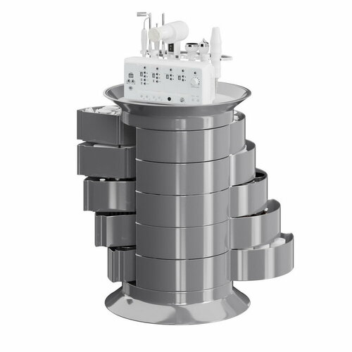Косметологическая тележка с 15 ящиками GiroCo Espera Plus 49х49х72 см серая, круглая, пластиковая, выкатная на колесиках для салона красоты, косметолога