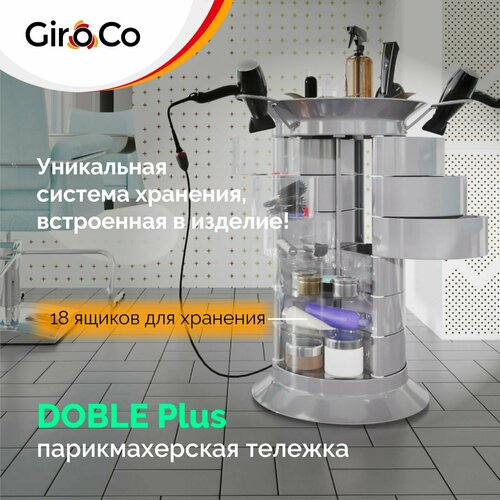 Парикмахерская тележка с 18 ящиками GiroCo Doble Plus 49х49х83 см серая, круглая, пластиковая, выкатная на колесиках для салона красоты, парикмахера