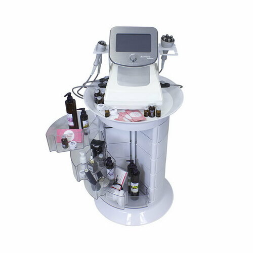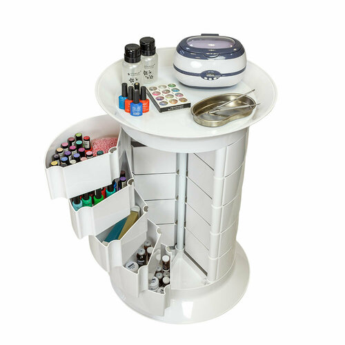 Косметологическая тележка с 15 ящиками GiroCo Espera Plus 49х49х72 см белая, круглая, пластиковая, выкатная на колесиках для салона красоты, косметолога