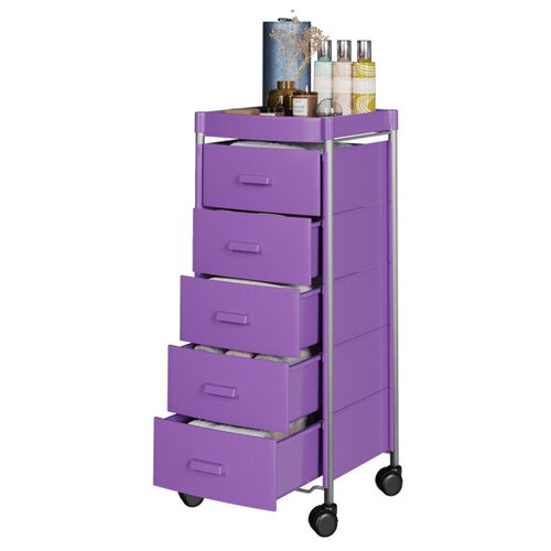 Этажерка с ящиками на колесиках GiroCo Agata 5 фиолетовая для ванной, прихожей, детской, кухни, офиса, 5 ящиков, 34,5х33,5х89 см
