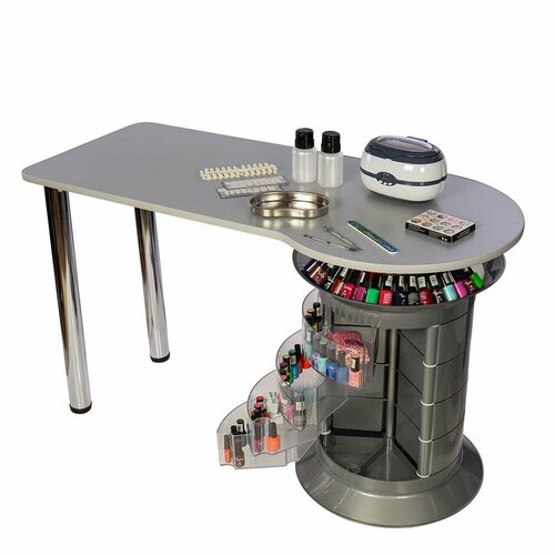Маникюрный стол с 12 ящиками GiroCo Elite Plus 74х120х50/55 см серый, прозрачный для маникюра, для салона красоты, с тумбой