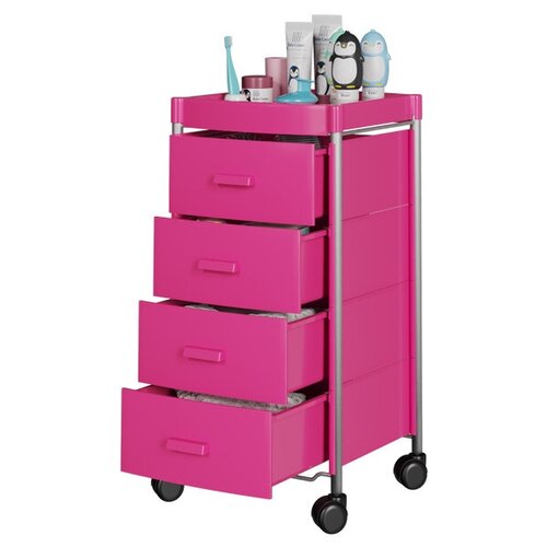 Тумба-стеллаж с ящиками пластиковая на колесиках GiroCo Agata 4 розовая для ванной, прихожей, детской, кухни, офиса4 ящика,34,5х33,5х74 см